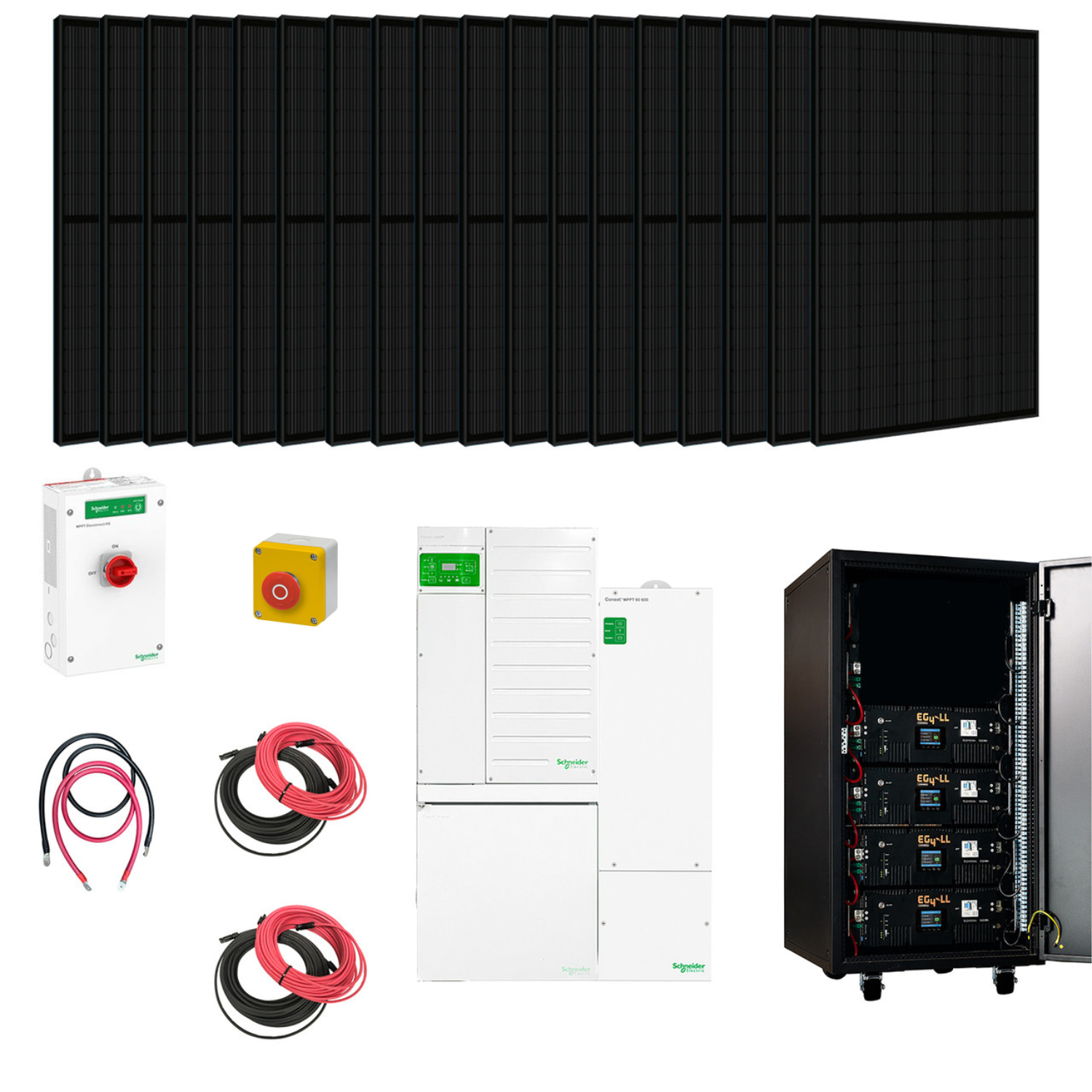 Schneider MPPT 100 Charge Controller Features: Optimum System Performance High power, 600 Vdc MPPT charge controller with 100A rating for output charging power up to 6 kW. Ideal for grid-tied self-supply and off-grid systems boasting high PV to battery to grid efficiency and the ability to recharge dead batteries from solar, providing maximum energy resilience for longer duration grid outages. Includes shade tolerant fast sweep MPPT algorithm to harvest more energy. Adaptable Wide MPPT and PV operating voltage range allows for flexibility in wiring for oversized PV array power ratings e.g. 7 kW or more Compatible with all brands of PV Modules and a wide range of 24 V and 48 V battery technologies, including newly updated closed loop communication with EG4 brand batteries. Stand-alone application or integration with XW PRO, XW+ and SW series storage inverters for a complete solar and storage solution System Control Panel The SCP provides a wall mount display for monitoring and fault reporting, as well as setup and configuration.   EG4-LL-S Lithium Battery Features: Discover our exceptional Best In Class Solar Rack Battery, engineered for outstanding performance and longevity. With a remarkable 7000 deep charge and discharge cycles, this battery is designed to last for up to 15 years, with an 80% daily depth of discharge, and is capable of an impressive 20-year lifespan. Featuring Tier One, A+ Cell Composition and boasting 99% efficiency, our LiFePo4 16-Cell Pack ensures top-tier quality. Plus, it offers the #1 Energy Density in a Server Rack Battery Form Factor. With selectable closed-loop inverter communications compatible with Schneider, Solark, Victron, Growatt, and EG4, you have the flexibility to choose the best fit for your setup. You can also paral…